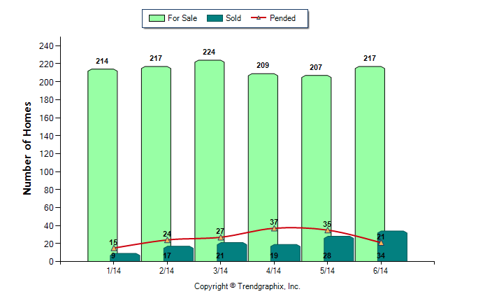 The average price per square foot for a property sold in June was $476, up $13 from May and a full $85 per square foot from January. In fact, 55 properties were sold or under contract for sale in June, representing over 25% of the entire available inventory.